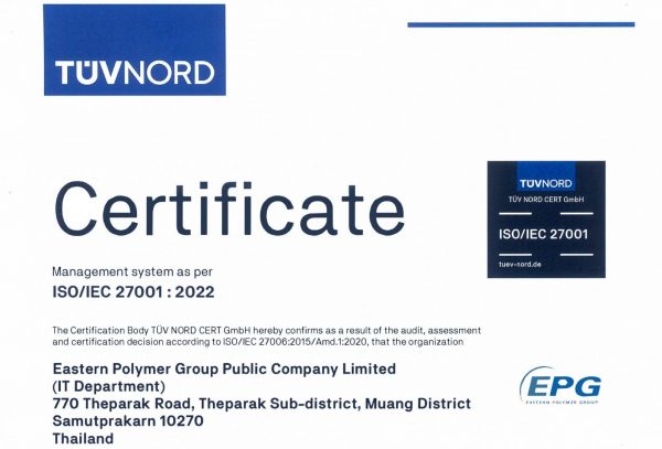 ในการนี้คุณชำนาญ วิทูรปกรณ์ (นั่งที่ 3 จากซ้าย) รองประธานเจ้าหน้าที่บริหาร บริษัท อีสเทิร์นโพลีเมอร์ กรุ๊ป จำกัด (มหาชน) พร้อมด้วยคุณศศินทร์ วิทูรปกรณ์ (ยืนที่ 3 จากซ้าย) ผู้ช่วยผู้อำนวยการสายงานบริหารองค์กร บริษัท อีสเทิร์น โพลีแพค จำกัด เข้าเฝ้ารับพระราชทานโล่ประกาศเกียรติคุณ ในฐานะผู้สนับสนุนกิจการมูลนิธิขาเทียมฯ นับเป็นเกียรติอย่างยิ่งแก่บริษัทและบริษัทย่อย สะท้อนความสำเร็จขององค์กรและแนวทางการดำเนินธุรกิจที่มุ่งสร้างคุณค่าร่วมแก่สังคมควบคู่การเติบโตอย่างยั่งยืน